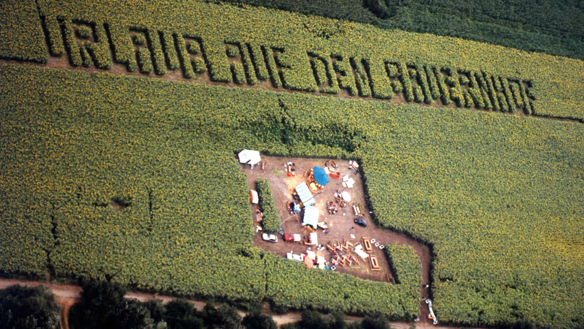 Die Schrift „Urlaub auf dem Bauernhof“ musste sichtbar sein, denn dafür wurden 50.000 Schilling garantiert. Per Hubschrauber-Beweisfoto konnte der Landwirtschaftskammer das Werbefoto überreicht werden. Mit dieser Landart-Kunst wurde auf Wiesen und Feldern Kunst-Geschichte geschrieben, denn egal wo, erst später wurden mit Blumen und Sträuchern großflächig Symbole und Botschaften in die Landschaft geschrieben. Mit dem treuen ackern®-Feldherrn Manfred Stippich wurde das ackern®-Gelände gestaltet und organisiert. Feinste Designer-Möbelstücke von den Kreuzbergl-Villen wurden eingesammelt und angereichert mit Sofas aus Strohballen und mit offenem Schleppe-Bier sowie Bauernjause startete das erste ackern®.