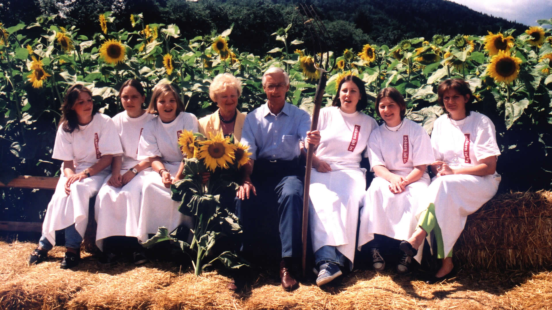 Bis die Sonnenblumen blühten, warteten wir rund zwei Monate und es wurde lange überlegt, wie in das Sonnenblumenfeld der Schriftzug vom Sponsor „Urlaub auf dem Bauernhof“ eingebracht werden konnte. Es ging sich sehr knapp aus und dann gelang mit Universalkünstler, Maler und Bühnendesigner Gerhard Fresacher das Husarenstück. Knapp vor dem Südring wurden 15 Meter große Buchstaben geschrieben, indem einfach die Sonnenblumen der Reihe nach per Fuß umgetreten wurden, bis ein einzelner Buchstabe gestaltet war. Alle Vorbereitungen mit Architekten, Mähmaschinen und Macheten wurden verworfen.